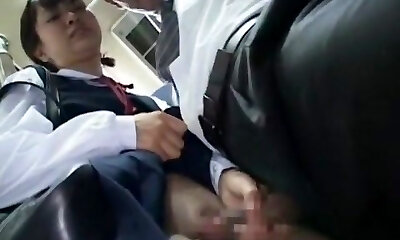 Asian Schoolgirl Handjob in a Bus!