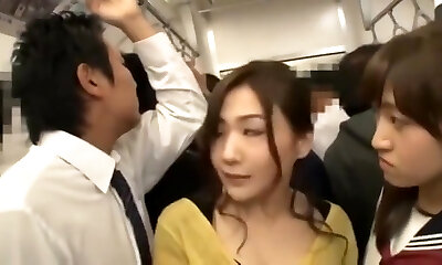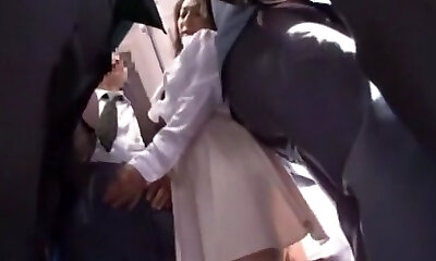 Japanese slut gets crammed in a crowded public bus